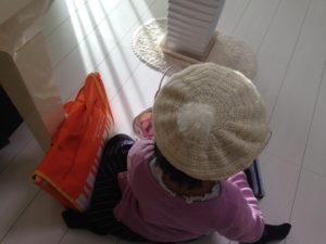 「可愛い♪ママが編んだのですか?」と私が聞くと、「いーえ、ばあばです♪」とママ。