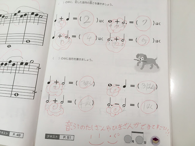 今日のMちゃんのドリルブック、計算式でした。スラスラとけて、褒めてあげたら、自分で自分を褒めていました(笑)幼稚園の時からリトミック活動をしながらピアノを練習してきたMちゃん、積み重ねの結果だなぁ、と感じた本日でした