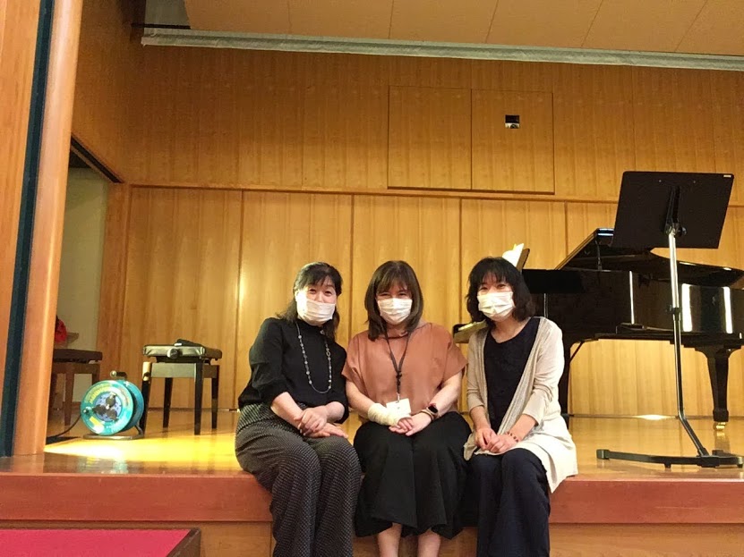 昨日のスタッフ集合です。私のピアノ講師の師匠のMY先生、市丸ゆかり先生、私、です。3人とも美しいのに、マスクで顔が隠れています。残念(笑)