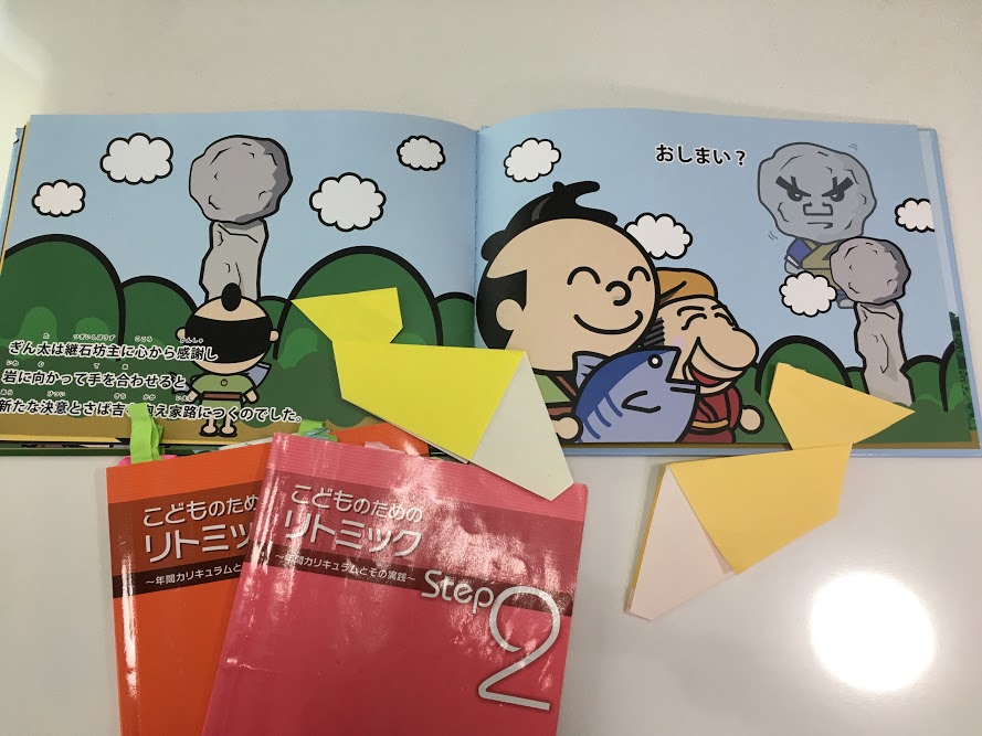 今回は時津町で有名な、鯖くさらかし岩の絵本からリトミックを展開していきました。なにせ、鯖くさらかし岩は子供たちも見る機会も多いし、町内の電光掲示板にもよく画像をよく見かけます。絵も可愛いし、リトミックのアイディア盛りだくさんでした♪お家に帰って、リトミックでたくさん遊んでくれたら嬉しいです!!何より、ウン十年住んでいて、初めてこんな絵本ができたことを嬉しく思います!!