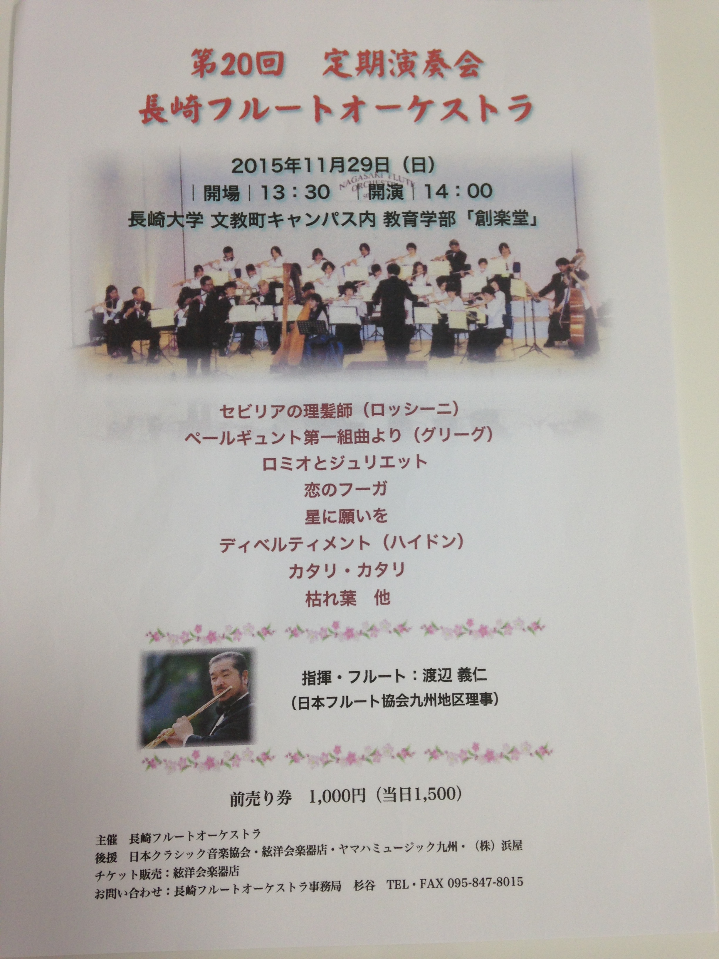 入団してたしか10年ほどになります。長崎フルートオーケストラ。