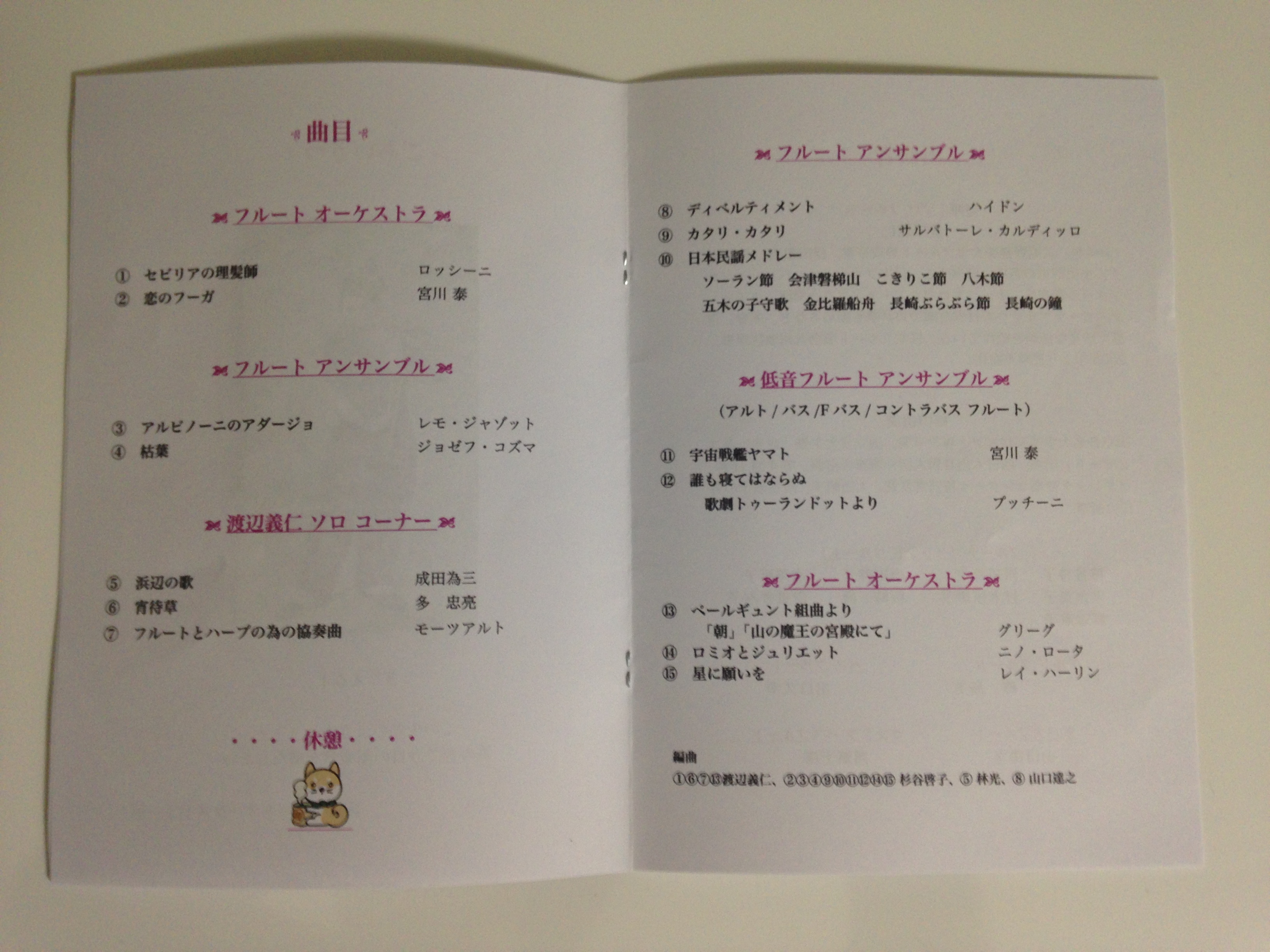 このオーケストラの特徴は、先生がプロのフルート奏者ということ。メンバーは様々で、フルートのプロ・音楽の先生・学生・アマチュア・始めたばかりの人が一緒に演奏していること、演奏する曲はほとんどオリジナル編曲であること・・・です。
