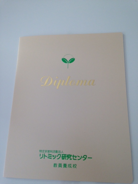 6年ぶりにリトミック研究センターの研修を受講、1年間勉強して、広島で試験を受け、無事に合格して、今日、認定証をいただきました~♪