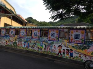 ここ1か月ほど園長先生はじめ、先生方が熱心に描かれていた壁完成しました。とっても素敵♪